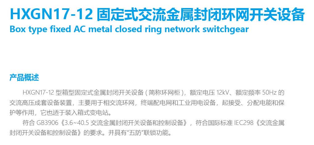 HXGN17-12固定式交流金屬封閉環(huán)網(wǎng)開(kāi)關(guān)設(shè)備